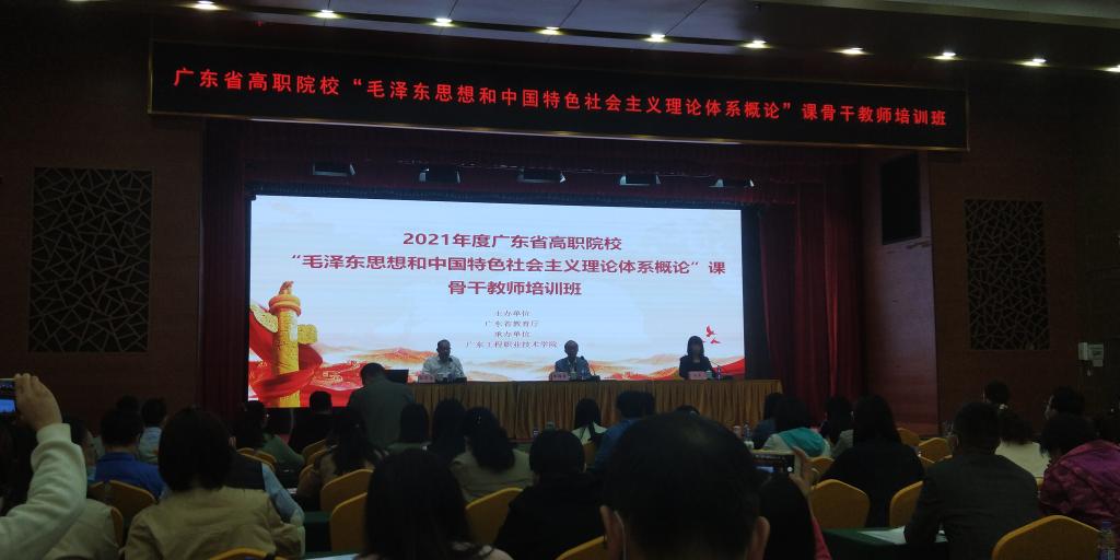 根据《广东省教育厅办公室关于举办2021年高校思想政治理论课骨干教师培训班的通知》精神,由广东工程职业技术学院承办的2021年度广东省高职院校“毛泽东思想和中国特色社会主义理论体系概论”课骨干教师培训班于10月23日至10月24日在广州东山宾馆会议中心正式举办。思政部吴孟显、尹丽娟两位老师参加了本次培训班。