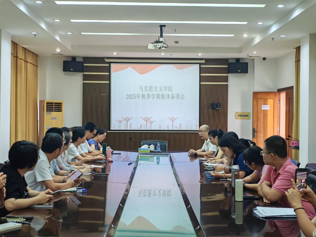 2025年9月18日下午,马克思主义学院在行政楼507会议室组织召开新学期集体备课会。会议由副院长黄佳旭主持,全体思政课教师参加。